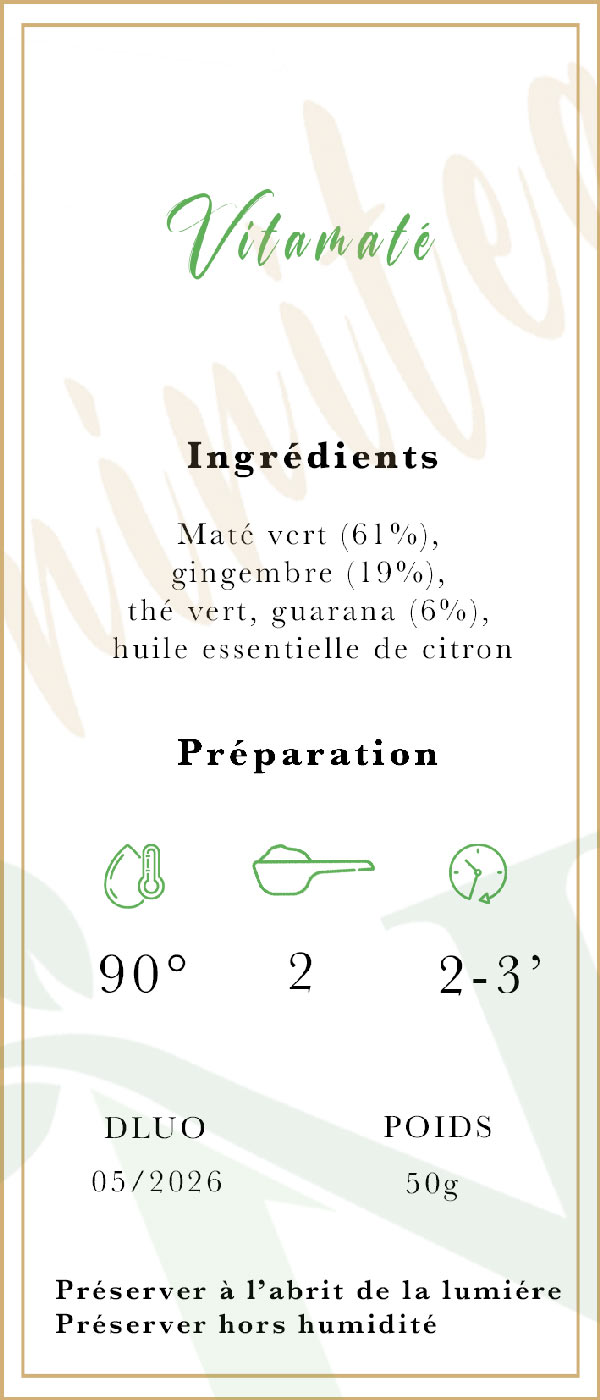 Vitamaté est un mélange énergisant et stimulant grâce à ses ingrédients naturels tels que le Maté vert, le gingembre, le thé vert et le guarana. C’est une boisson idéale pour les journées bien remplies où l’on a besoin d’un coup de fouet.
